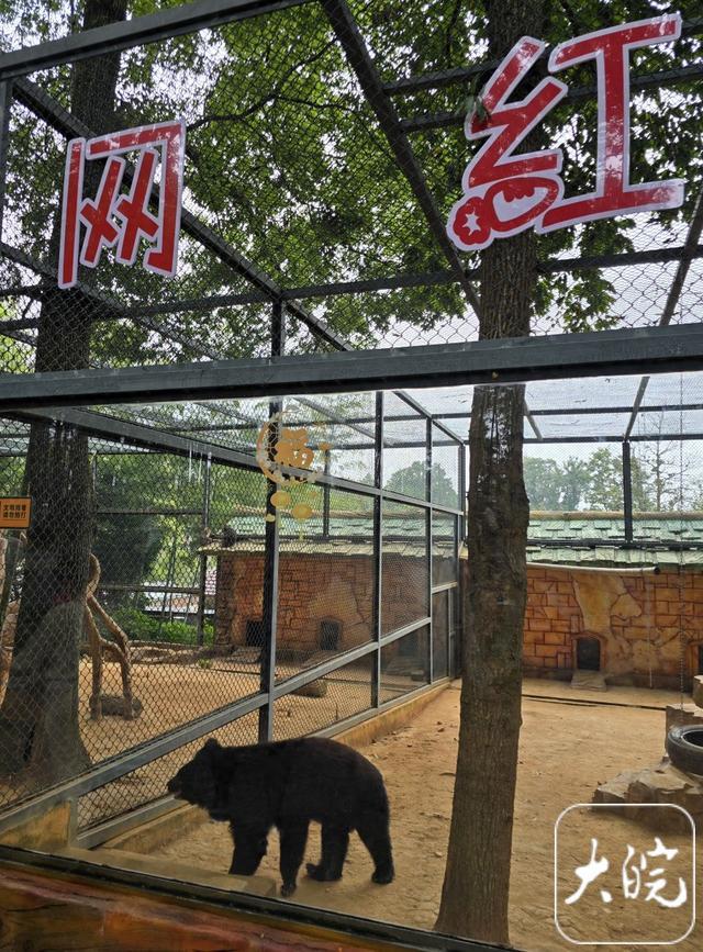 10月4日下午,大皖新闻记者来到皖南野生动物园,看到“黑风”的笼舍外,已经挂上了“网红动物黑风”的牌子,还有自己专属的“熊形”立牌。不少游客慕名而来,为一睹“黑风”“熊姿”。