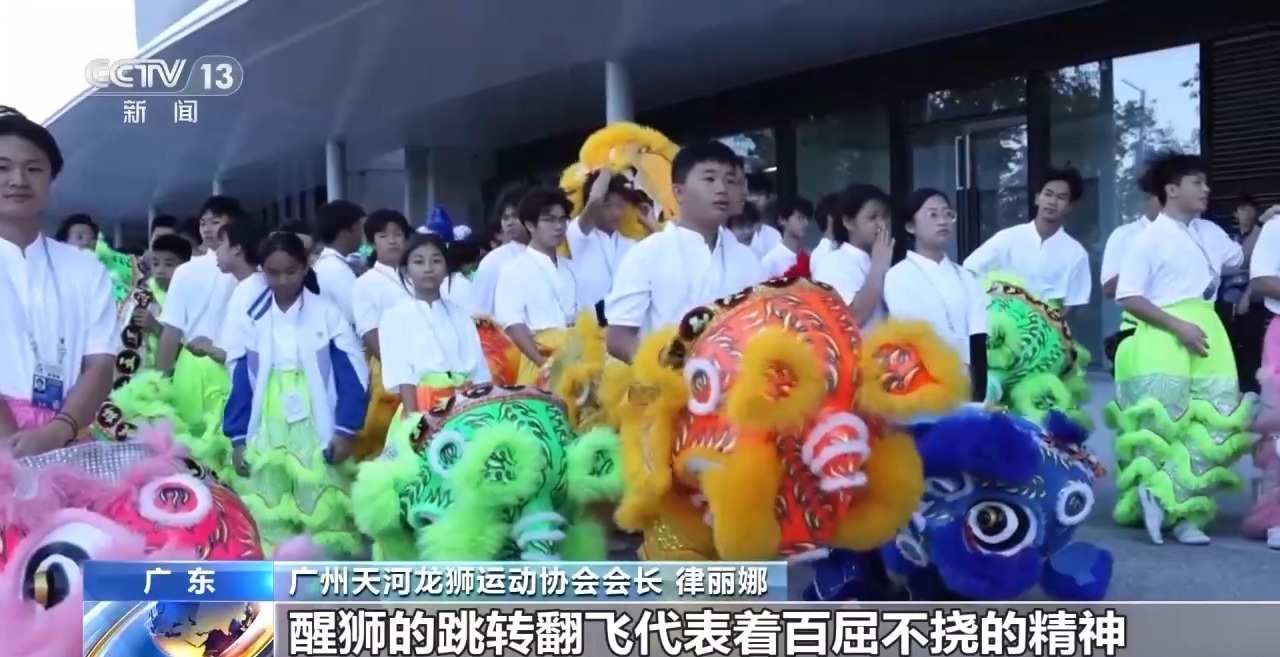 广州天河龙狮运动协会会长 律丽娜:醒狮的跳转翻飞代表着百折不挠的精神,醒狮的每一个动作,都是传统文化的传递,同时也彰显了我们时代的精神。